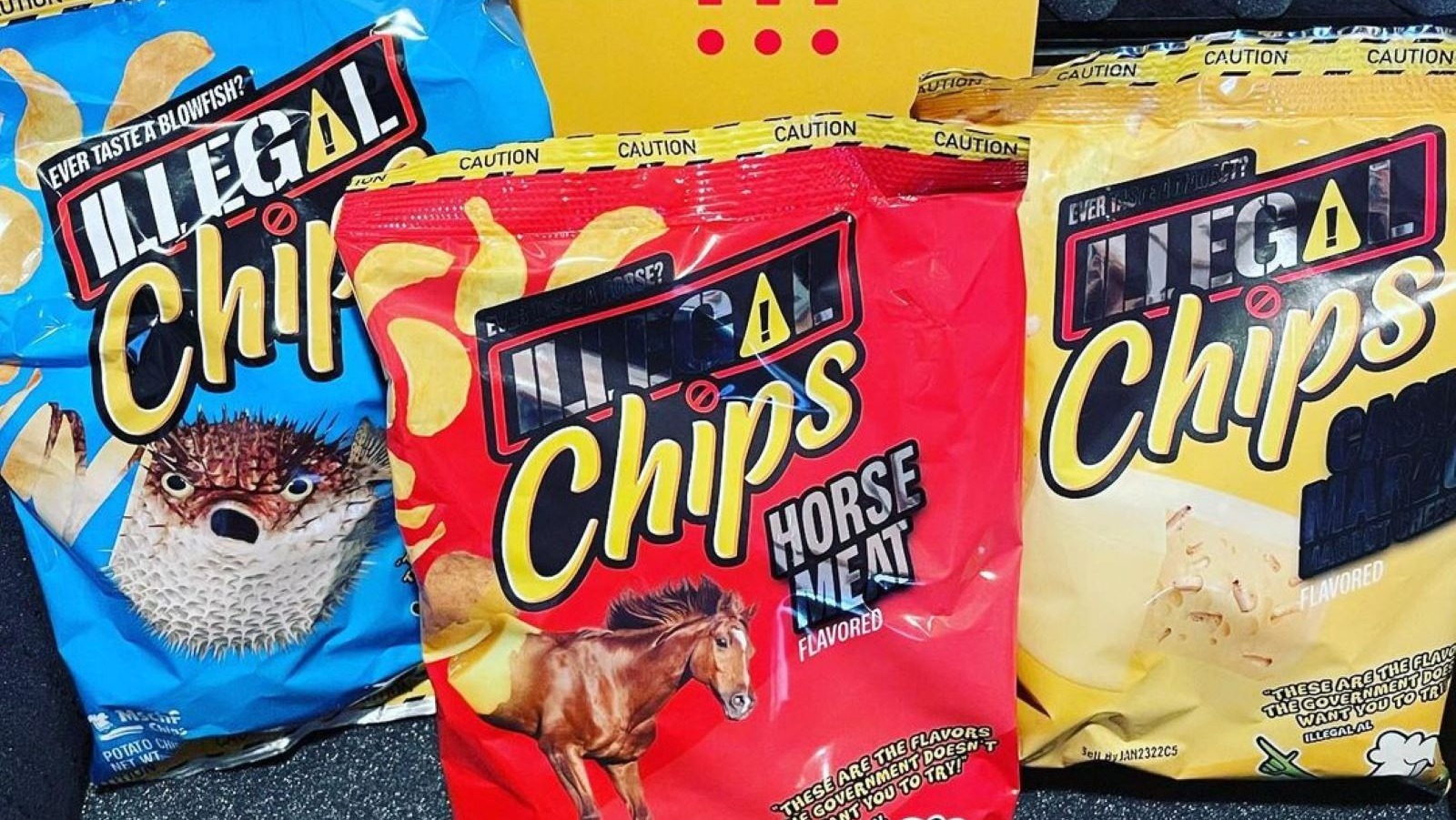 Illegal Chips sells the trio of flavors — plus a fourth mystery bag — for $12 while supplies last. And according to the FAQ section, the horse meat and fugu flavors qualify as vegan, the casu marzu flavor is vegetarian, and all flavors qualify as kosher. If you ever wanted to push your limits with some taboo snacks, this art collective's product might just raise the bar on chip flavors.